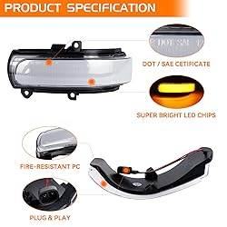 𝐂𝐎𝐌𝐏𝐀𝐓𝐈𝐁𝐈𝐋𝐈𝐓𝐘 Clear lens led mirror lights for 2011-2016 Scion tC, 2008-2015 Scion xB. Replace OEM# 8173022180, 8174022180. Perfectly to update Scion xB tC Side Mirror Marker LED light assembly. 𝐅𝐔𝐋𝐋 𝐋𝐄𝐃 Sequential led side mirror lights for Scion tC adopst with 3-row high-intensity led diodes, form a full brightening strip of the LED light. Effectively remind passing vehicles no matter weather. 𝐒𝐔𝐏𝐄𝐑 𝐐𝐔𝐀𝐋𝐈𝐓𝐘 Both of passenger and driver side mirror turn signal lights for Scion are made up of high quality clear white PC lens and durable ABS housing, approved with CE/SAE/DOT Certified. IP67 waterproof, lifespan more than 55000 hours. 𝐏𝐋𝐔𝐆 𝐍 𝐏𝐋𝐀𝐘 Simply remove screws and take off OEM light, then directly replace with brandnew mirror marker lights for Scion tC or xB. No wiring or drilling required, Canbus LED control unit design, no error code. 𝐏𝐀𝐂𝐊𝐀𝐆𝐄 𝐈𝐍𝐂𝐋𝐔𝐃𝐄𝐃 Pack of 2 sequential amber mirror turn signal light for 2011-2016 Scion tC and 2008-2015 Scion xB. Direct replacement for factory mirror marker light, no modification or trimming needed, no additional resistors or relay required.