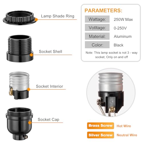 - 【Keyless Socket】Lamp socket consists of 4 parts: bottom cap, top cap, interior, and shade ring. This lamp holder does not come with a switch and is suitable for lamps with their own switches. 2 Lamp shade ring that allows you to easily attach the lamp shade to the lamp. Equipped with threaded cable grips for locking and protecting wires, which makes it more stable for hanging and look better.