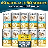 Lint Rollers 900 Sticky Sheets, 10 Spare Rollers,10 Pack of Refills Only. Pet Hair Remover for Clothes, Furniture, Couch, Carpet, Dog Hair Remover, Cat Hair Remover, Animal Fur, Fuzz