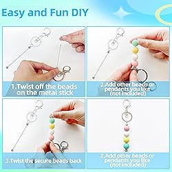 【Rich Keychain Making Kit】The package includes 10 pcs of blank metal beadable keychain bars and 10 pcs key ring. This allows you to create a wide range of unique designs or create Various styles of keychain charm chains, share them with friends and family. 【High quality and exquisiteur】 keychain bars for beads are crafted from quality metal,electroplated colos, sturdy enough and rust resistant, providing unparalleled durability to withstand daily use and last for years to come; The beads on the metal rod are also very strong, not come loose easily.These unique keychains are sleek and stylish look, these exceptional keychains can add a touch of elegance to your keys, bags, or zipper pulls 【Easy to Use】You just need to twist off the beads on the metal stick, and then add your favorite beads or pendants (not included), then twist the secure beads back; The simple construction and practicality make them suitable for DIY lovers, easy to assemble, providng a stress free and fun crafting experience. 【Stylish DIY Decorations】These DIY keychain supplies are not only practical, but also fashion accessories; Incorporate your personalized designs into your keys, bags, backpacks or purses,add stylish accents to them; Let your creativity shine, and turn ordinary items into eye-catching ornaments; With these stylish keychains, you'll stand out in the crow! 【Wide Application】our beadable keychain blanks are both practical and decorative, ideal for many occasions, such as birthdays, weddings, anniversaries or other special events; They can be customized to match different styles, making them suitable for both men and women.