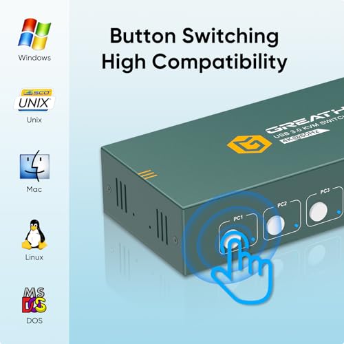 - 【USB3.0 KVM Switch 4 Computers 2 Monitors】This dual monitor KVM switch 2 monitors 4 computers has 3 USB3.0 ports, providing up to 5Gbps data transfer speed, 10 times faster than USB2.0 transfer rate. Read faster and work more efficiently when sharing devices such as printers, cameras, scanners or USB flash drives between two computers