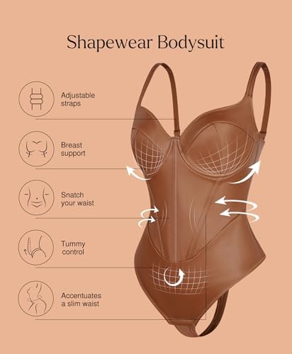 Popilush Leather Corset Bodysuit for Women Tummy Control V Neck Thong Shapewear Sleeveless Body Suit Tank Tops