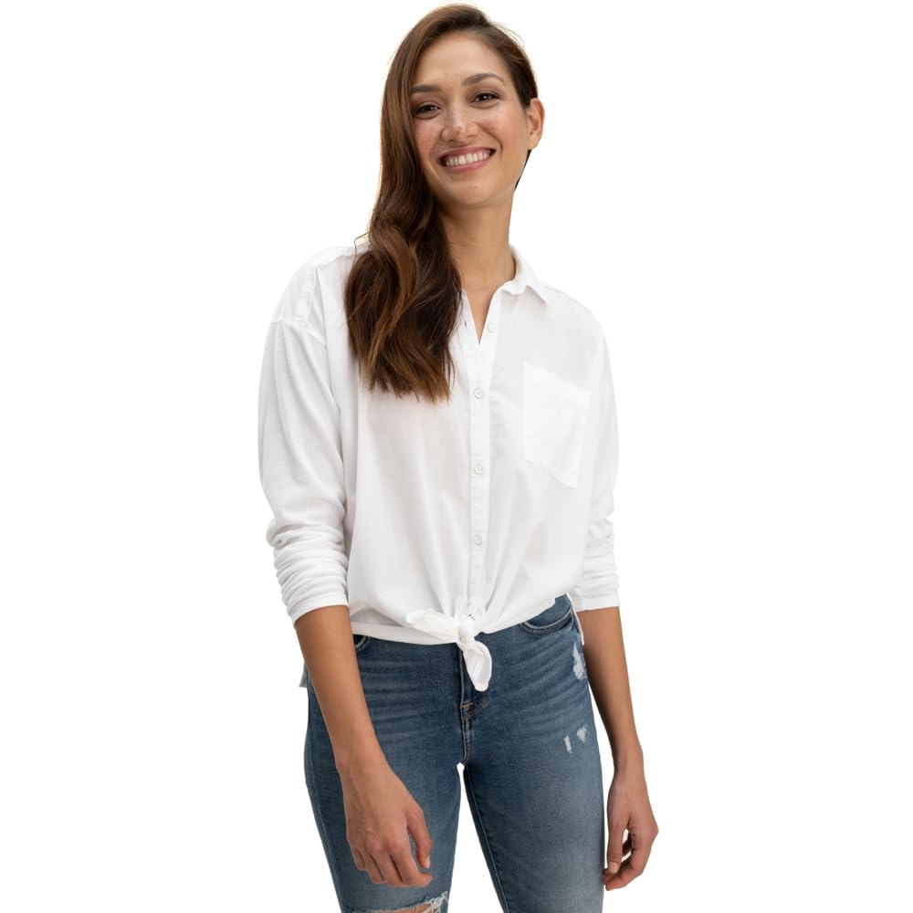 Splendid brings you this elegant and versatile ladies' V-neck blouse that effortlessly combines style and comfort. Crafted with a loose fit and soft hand feel, this blouse allows for unrestricted movement, making it perfect for both casual and semi-formal occasions. The shirring at the back yoke seam adds a touch of sophistication to the design. Available in stunning colors, White (Stripe) and Blue (Chambray), this blouse is made from high-quality materials – the White variant is a lightweight blend of 85% Viscose and 15% Linen (approximately 165 GSM), while the Blue option is crafted from 100% Lyocell (approximately 156 GSM). With sizes ranging from XS to XXL (XS = 0-2, S = 4-6, M = 6-8, L = 10-12, XL = 14-16, XXL = 16-18), you're sure to find the perfect fit. The model featured is 5'10" and wears a size Small. Easy to care for, this blouse is machine washable and can be tumble dried on low settings. Elevate your wardrobe with this versatile and stylish Splendid ladies' V-neck blouse.