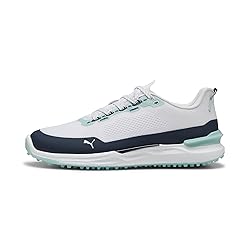 - Step onto the course with confidence in the PUMA IGNITE Elevate X men’s golf shoes, designed for golfers who want performance, comfort, and style in one lightweight package. Built with advanced technology and a sleek spikeless design, these shoes deliver both on-course power and off-course versatility. The foundation of these spikeless golf shoes for men is Ignite foam, a revolutionary midsole that provides plush cushioning, responsive energy return, and superior step-in comfort. Stability is redefined through Floatplate Technology, an integrated midfoot shank that ensures torsional rigidity and balance during your swing. This innovation gives these mens golf shoes spikeless the control you need for powerful, consistent shots, while the Exoshell upper locks in the foot for a secure fit. Rain or shine, these golf shoes men spikeless keep you covered. The waterproof Exoshell upper delivers breathable comfort with a 1-year waterproof guarantee, making them a dependable choice for year-round play. Traction is never in question thanks to 100+ angular lugs that grip multiple surfaces. Perfect as golf sneakers men can wear from the course to casual settings, the flat-top design makes them versatile enough for everyday wear. Whether you’re searching for wide golf shoes for men, durable breathable golf shoes, or stylish white golf shoes men, the Ignite Elevate X blends modern style with game-changing performance. Engineered for comfort, durability, and control, they’re the ultimate upgrade for golfers of all skill levels. Take your game higher with the PUMA IGNITE Elevate X golf shoes for men, where innovation meets comfort, and every round feels effortless.
