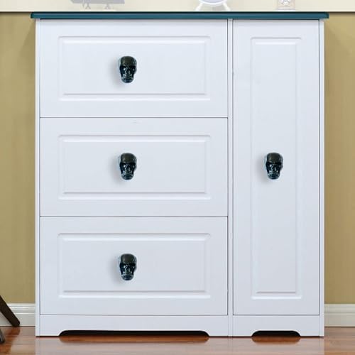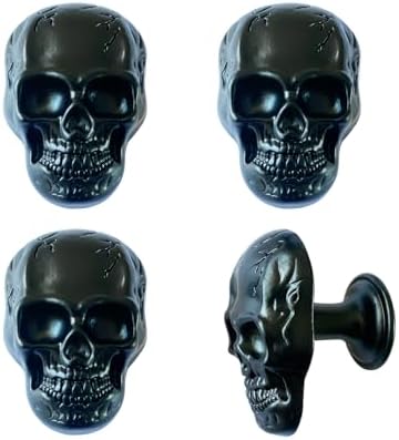 Set of 4 Skull Drawer Knobs, Cabinet Knobs, Drawer Pulls, Halloween Home Decor (Black-Alloy Skull Knobs)