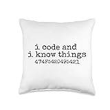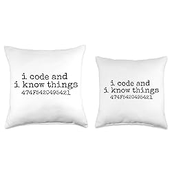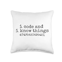 100% Polyester Funny Coder I Code And I Know Things ASCII Got It Design. This funny computer programmer design is perfect for coders, computer programmers, software developers, and software engineers. Wear this funny coder thought-provoking design while coding at work, school, developing an app or developing software. 100% spun-polyester fabric Double-sided print Filled with 100% polyester and sewn closed Individually cut and sewn by hand Spot clean/dry clean only