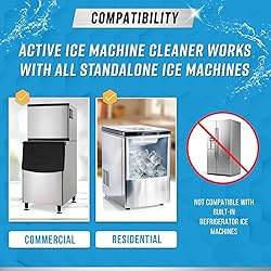 Works with all Ice Makers and Machines: Designed for Countertop, Portable, and Commercial Icemaker. Compatible with top brands including Ice-o-matic, Frigidaire, Kitchenaid, Scottsman, Manitowac, Hoshizaki, Silonn, Euhomy, GE Profile 2.0, Whirlpool 4396808, Jenn Air, Uline, Gevi, and more. (Not for Built in Refigerator Ice Makers) Powerful Nickel-Safe Descaling: ACTIVE Ice Machine Cleaner and Descaler is made from Food Grade Citric Acid and other Simple Ingredients that won't harm metals such as nickel, stainless steel, and aluminum plated components inside your self cleaning ice maker! Tablets are specially formulated to target the hard water, calcium buildup, and limescale that build up in your machine Keep Ice Clear and Tasting Fresh: ACTIVE Ice Maker Cleaner and Descaler is essential to make Crystal Clear Ice. Enjoy the Best Tasting ice cube, nugget, pebble, pellet, bullet, crushed ice, and more at home with a regular descale treatment All-in-one Descaler & Odor Eliminator: Hassle free freshener for your Commercial, Industrial, Home, Stand alone or Counter Top icemaker Value-size 24 Tab Kit: Each Package of ACTIVE Includes 1 Year Supply of descaling tablets (24 Tablets). Compare to packets and liquids with 2-4 uses per container
