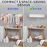 Save Space & Maintain Elegance – Elevate your laundry area with a sleek, modern drying rack that folds to just 1 inch against the wall. Featuring 6 elegant hooks, it combines practicality with refined style, seamlessly complementing any decor while saving precious floor space. Rock-Solid Stability for Any Load – Engineered for durability, our clothes drying rack wall mounted features 5 heavy-duty aluminum rods and a sturdy carbon steel base, supporting up to 66 lbs. Whether it’s towels, sweaters or clothing, this rack is designed to handle it all with confidence and reliability. Effortless Installation – Enjoy a stress-free setup with our fully assembled retractable laundry drying rack wall mount. The package includes an installation manual, drilling template, 10 screws, 10 heavy-duty anchors, 10 drywall anchors, and a long screwdriver bit. Everything you need for a secure and easy installation! Versatile for Any Space – Perfect for laundry rooms, bathrooms, balconies, or patios. Use this drying rack clothing wall mounted to dry towels, shirts, sweaters, clothing and more. Its sleek design complements any indoor or outdoor setting, making it a practical and elegant addition to your home! Laundry Made Effortless – Is it possible to love doing laundry? With the Delfori laundry room hanging rack, it’s definitely easier and more enjoyable! This efficient solution helps you maximize your laundry space, making drying clothes more convenient and hassle-free while saving energy and reducing your carbon footprint by air-drying clothes.