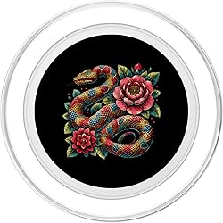 Are you looking for unique stuff for snake owners, snake breeders, reptile experts, serpent enthusiasts, exotic pet lovers, florists, or anyone in your family or friends with a fun sense of humor? Then, this is a great and awesome thing for you. Python Snake Floral Ball Python Tattoo Flowers is an excellent nifty product for all. This novelty graphic drawing art design is perfect for everyone who loves herpetology, zoology, wild animals, cold-blooded animals, and ophidians. MagSafe base attaches the PopGrip to your MagSafe-compatible case (not included). Printed top is swappable with other compatible PopGrip models. Just press flat, turn 90 degrees until you hear a click and remove to swap. Compatible with iPhone 12, iPhone 13, and iPhone 14 models. Works best with smooth, hard MagSafe compatible case. Wirelessly charge your iPhone by sliding off the magnetic PopGrip and setting your iPhone on a wireless charger.