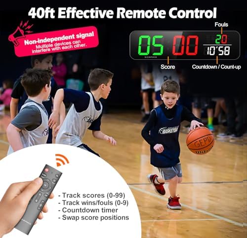 - 【Easy to Use】The scoreboard allows for quick resets, with each score being individually clearable. It can be easily controlled from up to 40 feet away using a remote. With a 96-inch power cord and support for portable battery power, it’s practical for use anytime and anywhere.