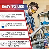 VALUE 2 PACK THREADLOCKER: Our medium-strength blue threadlocker and high-strength red threadlocker, which can meet your various needs! With excellent adhesion and long-lasting anti-loosening effect, ensuring screws, nuts and metal fasteners are firmly fixed in place. Even in high-vibration environments, our products can provide reliable solutions KEEP FASTENERS SECURE AND TIGHT: Our thread lock has strong adhesion to hold screws, nuts and metal fasteners firmly in place, preventing loosening due to vibration. Our threadlocker is the ideal choice to solve your loosening fixing problems! WATERPROOF AND RUSTPROOF: Our blue threadlocker is heat and water resistant, providing you with a long-lasting and secure lock, perfect for both indoor and outdoor use. Not only does it effectively prevent leaks, rust and corrosion, it also saves you the cost of stocking expensive lock nuts and washers EASY TO USE: Our thread locker features a sealed and leak-proof design to prevent leaks. Simply apply the thread locker evenly to the threads, tighten the nut, and cure initially for 20 minutes, then fully cure within 24 hours. Medium strength blue threadlocker are easily removed with basic hand tools AFTER-SALES SERVICE: Our thread lock is suitable for a variety of automotive repair, industrial and furniture applications. Its reliable performance and versatility make it an ideal choice for a variety of uses. If you are not satisfied with our threadlocker, please contact us through Amazon and you will get satisfactory service