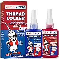 - Bellisinno thread lock provide a long-lasting and secure locking effect for your equipment. FEATURES: Long-lasting locking Anti rust and corrosion Waterproof Cold and heat resistant Fast curing Anti leakage THREAD LOCKER BLUE MEDIUM STRENGTH Color: Blue Applicable Fastener Size: M6-M20 Glue Viscosity(25℃)mPa.s: 1200-5000 Average Removal Torque N.m: 5 Average Breaking Torque N.m: 12.4 Temperature resistance range: -65℉-300℉ Tip: It can be easily removed using basic hand tools THREAD LOCKER RED HIGH STRENGTH Color: Red Applicable Fastener Size: ≤M36 Glue Viscosity (25℃)mPa.s: 400-600 Average Removal Torque N.m: 17 Average Breaking Torque N.m: 25.5 Temperature resistance range: -65℉-300℉ Tip: Simply heat the nut or bolts to 300 ℉ for 10 minutes and remove with hand tools WHY IS THE BOTTLE NOT FULL? Threadlockers are anaerobic and require air to prevent solidification and hardening. INSTRUCTIONS: 1.Clean and dry the metal parts. 2.Shake screw glue before each use. 3.Apply thread sealer evenly to the screws and tighten the nuts. 4.Wait 20 minutes for initial curing and 24 hours for complete curing. NOTICE: Keep thread lock out of reach of children. Store the screw glue in a cool, dry place. Avoid contact with skin and eyes. In case of contact with eyes, rinse with plenty of water and seek medical attention immediately.
