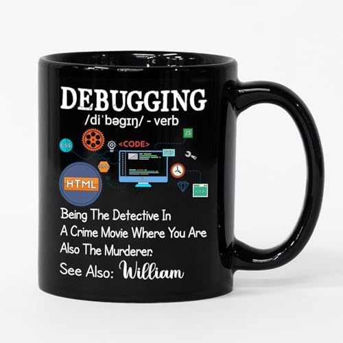 • PERSONALIZED MUG GIFT: This ceramic coffee mug is thoughtful gift for Birthday / Mother's Day / Father's Day / Anniversary / Christmas / Thanksgiving / Retirements / Graduation or any occasion. This personalized coffee mug will make an amazing gift for Coder, Programmer, Software Developer, Computer Programmers, Computer Scientist, Software Engineer, Men Women, Friends, Coworker. You can click on the "Customize Now" to place your Design, Text and Name to your personalized coffee mug.