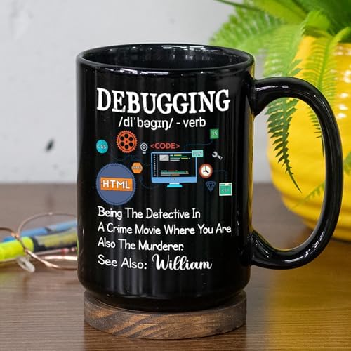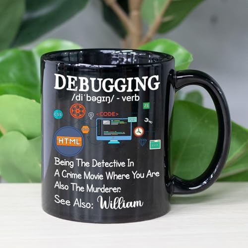 • GOOD MATERIAL: This unique Debugging Definition black coffee cup is made from durable ceramic. Features a glossy exterior and sturdy walls for safe, durable use. This is a sophisticated mug in beautiful ceramic.