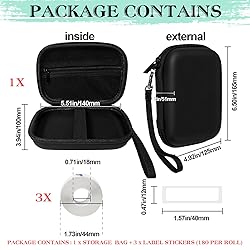 【Package Includes】Label Printer Storage Bag x 1 ; Label Paper Tape x 3 Roll (Label Paper 1/2" x 1 1/2" (12mm X 40mm) 180 Labels/Roll) 【Suitable for Multiple Label Printers】The case compatible with most label printers [ for Phomemo D30 D35 ]. 【Premium Hard Organizer Shell】The case is made of high quality PU material, more than 5000 times safety test. The case is waterproof, dustproof and impact resistant, it can protect your thermal printer perfectly. 【3 Rolls of Thermal Labels(Total 540pcs)】The label paper is made of high quality material, it is black and white printing. [ Strong Adhesive ] [ Tear-resistant ] [ Waterproof ] [ Abrasion-resistant ] 【Convenient Design】 ①Zippered mesh pocket easily stores 6 label tapes and charging cable. ②Soft elastic band secures printer in place. ③Removable carrying handle for easy carrying on the go.