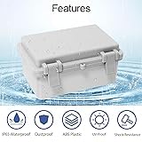 [ Sturdy Material ] - Made of high quality ABS plastic and has adequate thickness to offer a durable construction. This junction box has superior impact resistant and electrical insulation. [ Latch Design ] - Design with two plastic latches to offer a better seal performance with rubber grommet; Locking hole can be used worry free in outdoor environment. [ IP65 Rated ] - Waterproof and weatherproof feature effectively block splashing water, rain, dust, snow, oil, UV, etc., can be widely used for both indoor and outdoor applications. [ Various Application ] - Suitable for indoor and outdoor electric, communication, electron etc. And it can be easily drilled without cracking. Suitable one for your own creative projects. [ Size Info ] - External Size: 5.9" x 3.9" x 2.8"/150x100x70m(L*W*H); Internal Size: 5.1" x 3.1" x 2.6"/130x80x65mm (Please refer/ download dimension sheet for details)