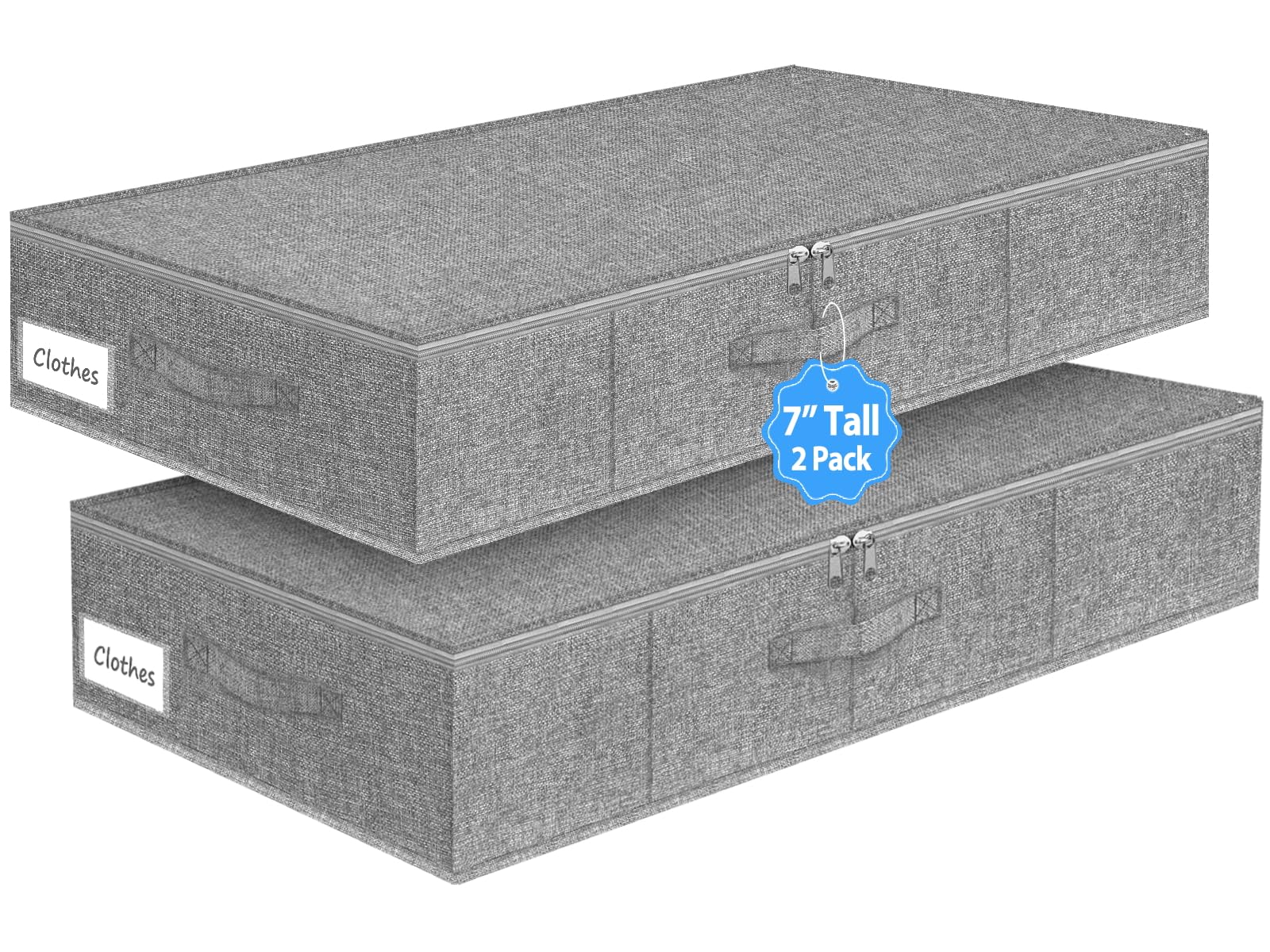 - 2-Pack Black Under Bed Storage Containers, 4.5 Inches Tall Low Profile Underbed Clothes Storage Organizer Bin with Sturdy Sidewalls/Bottom, Underbed Storage Bins 2 Storage Thin Bins. These ultra-shallow under-bed storage containers measure 33.6" x 15.9" x 4.5" and offer a 40-liter capacity each, perfect for maximizing space under beds or couches that are 5 inches off the floor or higher. The dust-proof design with double zippers ensures smooth access, while the ultra-thick fabric and reinforced sides and bottom provide sturdy, long-lasting durability. Ideal for storing blankets, pillows, out-of-season clothes, shoes, books, these versatile containers are built to handle a wide range of storage needs. Made from high-quality composite linen fabric, they can hold bulky items without losing shape. With a collapsible design, the bins save space when not in use, helping you make full use of hidden storage areas and keep your room tidy and organized.