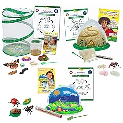 Three Immersive Projects Included in One! Learn about butterfly and ladybug metamorphosis and ant behavior all at once! Insect Lore’s Summer Bug Camp includes a Butterfly Garden with live baby caterpillars, Ladybug Land with live ladybug larvae, and Ant Mountain with live Western Harvester Ants, 3 sets of life cycle figurines, 3 STEM Journals, and all necessary supplies. 3 Different Kits, 3 Different Insects, Limitless Learning. Create unforgettable memories and connect to the joy of nature beyond the screen when you watch the transformation of your Painted Lady butterflies! You'll receive 5 caterpillars along with their food, a reusable 12-inch-tall mesh habitat, a Chrysalis Holding Log, Flower-shaped Butterfly Feeder, sugar packets for butterfly nectar, a feeding dropper, butterfly-themed STEM Journal and Butterfly Life Cycle Figurines. Witness Ladybug Metamorphosis: Get kids thinking about the mysteries of nature as they marvel at Ladybug metamorphosis! Observe your 5 ladybug larvae as they develop into Pink Spotted Ladybug adults! Your Ladybug Land habitat includes built-in magnifying lid, water reservoir and a water dropper. Reinforce life cycle learning with the included set of Ladybug Life Cycle Figurines and ladybug-themed STEM journal. Observe Ants on the Go: Teach responsibility and encourage exploration. Receive an Ant Mountain habitat, one tube of 25 live Western Harvester Ants, easy dig sand, water dropper, sand rod, Ant Life Cycle Figurines and ant-themed STEM journal. Keep kids intellectually engaged as they follow the simple steps to care for their ants. Harvester Ants are busy and fun to watch sparking curiosity for science and the natural world! Unforgettable Experiences – Bring nature indoors and create extraordinary memories when you set up this dynamic observation lab in the comfort of your home or classroom! Encourage hours of screen-free fun, STEM skill development and improve responsibility, focus and mindfulness. Trusted by Families & Educators for 50+ Years – Insect Lore quality butterfly kits are a favorite for parents, teachers, and nature-loving kids. Live insect shipping notice - Please delay ordering if temperatures in your area are below 50°F or above 90°F. Ships to the continental USA only.