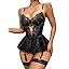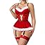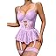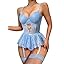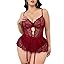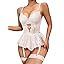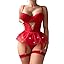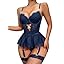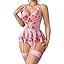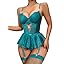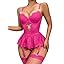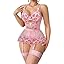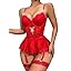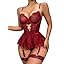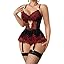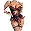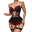 Lilosy Sexy Stocking Rhinestones Heart Garter Underwire Floral Mesh lace Sheer Babydoll Lingerie Teddy Bodysuit Skirt Set