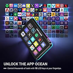 - AMPLIGAME Stream Controller designed to enhance your gaming and streaming experience. This innovative product features 15 customizable LCD Macro keys, allowing you to personalize and streamline your workflow for optimal performance. With its wide application compatibility, the Stream Controller is suitable for a variety of tasks such as gaming, video editing, content creation and more. The visual operation interface provides intuitive navigation and easy access to essential functions, enabling you to effortlessly control various aspects of your streaming session. The vivid RGB lighting not only adds a touch of style to your setup but also enhances the overall gaming atmosphere. Stream Controller enables you to execute complex commands and macros with just a press of a button. This feature simplifies repetitive tasks, saving you time and effort while maximizing your productivity.