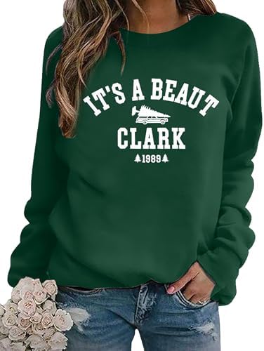ASTANFY Christmas Sweatshirts Women It's a Beaut Clark Sweatshirt Funny Christmas Tree Pullover Lightweight Shirt