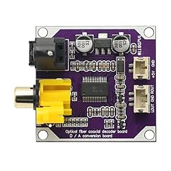 - Product Feature:1. Using high-quality materials, the quality is guaranteed2. Support 32k-192k, increase power supply anti-reverse protection3. LED elbows are parallel, 6MM LED bracket, LED center point to PCB is about 6.5MM, easy to install DAC digital decoder decoder board, DAC module, can be installed in the power amplifier to expand the power amplifier input interface, connect PC with optical fiber or coaxial , digital output interface of TV box, etc.4. Digital signal transmission can effectively reduce interference noise between machines and equipment, and improve sound quality5. Wide range of applicationsParameter:24-BIT D/A [support 16-24 BIT]Sampling rate up to 192K [supports 32K 44.1K 48K 96K 192K]Function description: Optical fiber and coaxial digital signal input (optical fiber priority) do not insert optical fiber, the input is the default coaxial, output stereo audio signal 0.7VA (with mute function)PCB size: 40*48mmpower input:+5V to +12V (do not exceed the power supply range), do not use an AC adapter for power supply. To avoid some low +5V power supply voltage, DAC chip power supply voltage is low, causing various problems, please use a power supply higher than +5V, 6V-12V test. If the +5V power test is no problem, you can continue to use it without any impact.The measured current of the DAC board (192K) is not less than 0.1A, so the power of the general power supply can be satisfied.Package list:DAC digital decoder board*1