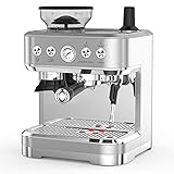 - Features: Semi-Automatic espresso machine with 20-bar professional Italian pump. This coffee machine gives you top quality extraction, resulting in a more fragrant and rich aroma. The built-in pressure gauge shows the exact pressure helping you make adjustments according to your personal taste. The espresso coffee maker has an built-in precision conical burr grinder, which grinds on demand. Integrated precision conical burr grinder grinds with 30 grind settings to meet different demands you can total control over the grind level, , provide your preferred taste with any roast of bean. The grinder has anti-static conical burrs prevents powder from flying and keeps the powder. The powerful stainless steel steam wand performance allows elevate your milk frothing experience effortlessly that enhances flavor and enables creation of latte art. What’s more, hot water can be offered if you want Americano coffee. With PID intelligent Temperature System for more accurate and stable temperature, the temperature inside the funnel can be controlled within the range of 197.6℉-204℉. PID delivers water at precisely the right temperature, ensuring optimal espresso extraction. The coffee machine is compact footprint and easy-to-clean, Whether it's rich and delicious espresso, cappuccino, or smooth latte, this espresso maker has you covered, Gift for Coffee Enthusiasts, Mom, Dad.Specification: Package Includes: