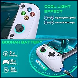 【For iPhone/Android – Cloud Gaming Ready】For iphone controller for gaming, this wireless gamepad offers wide compatibility with both Android and for iPhone devices, including the latest for iphone 16 series. It supports cloud gaming platforms like for Xbox Game Pass, for GeForce NOW, and MFi-certified Apple Arcade. Enjoy smooth gameplay in popular titles like Call of Duty, Fortnite, and more 【Cloud Gaming Controller Tips】For optimal performance, use this phone game controller on a fast, stable network. A strong connection helps reduce lag and ensures smooth, responsive cloud gameplay 【One-Minute Quick Connection】Make sure the mobile gaming controller is not charging. Turn on Bluetooth, then press B + HOME until the 4th LED flashes quickly. On Android, select “Wireless Controller”; on iOS, select “DUALSHOCK 4 Wireless Controller.” When the 4th LED stays solid, you're connected. Pro Tip: Hold “HOME” to reset if connection fails 【Hall Effect Joysticks & Precise Execution】This mobile controller for iphone features hall effect joysticks, offering precise 360° control with no drift or wear—perfect for FPS and action games. This android controller for gaming features an ergonomic design for comfortable, long-hour gameplay without hand fatigue 【Universal Expandable Design & Phone Case Support】Fits phones 4–6.9 inches, including those with cases, for a secure fit. Special groove supports lenses up to 4mm thick, solving protruding camera issues 【Long-Lasting Battery & Portable Design】Built-in 600mAh battery provides 6–8 hours of gameplay after 2–3 hours of charging. The phone controller for iphone is compact and lightweight for easy gaming on the go. (Note: wireless connection only; does not support phone charging.) 【Personalized Lighting Modes】The joysticks on this mobile game controller feature cool upgraded lighting effects. Press TURBO + L3 to turn ABXY lights on/off, and TURBO + R3 to cycle joystick lighting modes - A fun and practical gift for kids or family on birthdays or holidays 【Adjustable Turbo & Dual Vibration】Choose from three turbo speeds (5/s, 12/s, 20/s) for rapid attacks. Dual vibration motors provide immersive feedback for action games—perfect for fast-paced shooters and fighting games 【What’s in the Box & Support】Includes 1 Phone Game Controller, 1 USB-C Cable, and 1 User Manual. Our support team is ready to help within 24 hours