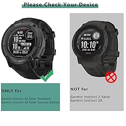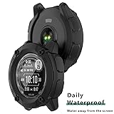 - ApplicationProtective case with screen protector compatible with Garmin Instinct 2X Solar(Standard/Tactical Edition).Please check your watch to make sure the right model case you choose.Full ProtectiveSoft case and slim HD clear screen protector full cover the screen and edges, gives your watch the best protection against drops, bumps, scratches and daily wear and tear.Easy to InstallSuper easy to install for its snap-on design to avoid taking the bands off first.Convenient ChargingCharge directly, don't need to take off the watch case before charging your smart watch.Package includesTempered Glass Screen Protector X 4,Case X 1 (black)