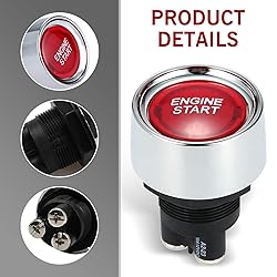 Convenience: This one-touch start ignition button switch allows car owners to start the vehicle by simply pressing the start button without using traditional keys, which simplifies the start process and improves the convenience of driving. Durable Material: This engine ignition button switch is made of ABS + metal material, with exquisite workmanship, smooth and burr-free, will not scratch your hands, can withstand long-term friction, anti-aging, not easy to wear, and longer service life. Protection Function: Press the start button once to turn it on, and press it again to turn it off. This one-touch start ignition button can automatically detect and close all windows to ensure the safety of vehicle items and has anti-theft function. LED Light Design: The ignition button has an LED light design, which can clearly see the button position at night and start the car quickly. It reduces the tedious operations of finding keys, inserting locks, and turning keys in the dark, especially in emergencies, and can quickly start the vehicle, improving efficiency. Product Details: You will receive 1 piece of momentary engine start push button switch, with overall dimensions of 1.8" x 1.3", mounting diameter of 0.86"/22mm, and has a good waterproof design to ensure more reliable performance.