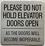 Please do not hold elevator doors open as the doors will become inoperable sign silver size 5x5 double tape aluminium rust free