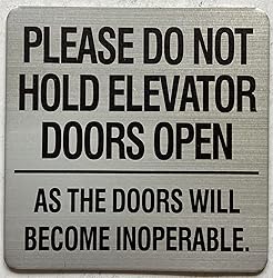 - please do not hold elevator doors open as the doors will become inoperable sign 5x5 inch