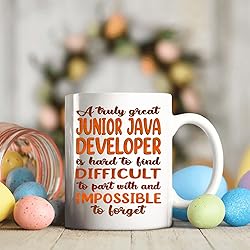 - Junior Java Developer 11oz White Ceramic Mug: Monizilucky creates unique funny coffee mugs which make great Birthday gift ideas for men, Birthday gift ideas for women, Valentine’s Day gift ideas, Mother’s Day gift ideas for Mom from Daughter or Son, Father’s Day gift ideas for Dad, Anniversary gift and Christmas present ideas for him or her. This funny coffee mug is made out of high quality ceramic. If you're shopping for a gift, you've found the one. Have a great gift delivered to their door, on-time in a nice gift box. This is the perfect mug for you or for someone you want to bring a smile to. A perfect size mug you can drink tea, soup or coffee out of. ● Printed in the USA ● Worldwide shipping ● Print type: Sublimation printing ● Material: Ceramic ● Color: White ● Sizing: 11oz ● Printed on both sides.