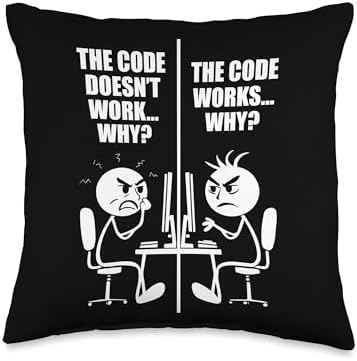 Funny Programmer Code Works Why Meme Coding Humor Throw Pillow