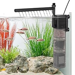hygger Aquarium Filter DC 5V Multiple Function Power Quiet Fish Tank Filter with Rainfall Aeration 3-Stages Filtration Adjustable Submersible Internal Fish Filter for 2-13 Gallon Small Tank
