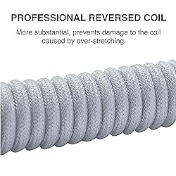 Solid & Durable Quality: GunMjo custom coiled keyboard cable enhanced with double-sleeved custom coiled keyboard cable, using high-quality copper wire with aluminum shielding foil, strong and durable material Metal Aviation Connector: The aviator connector allows you to quickly attach different cables to your keyboard or other accessories. It also adds texture to your desk setup and makes your keyboard look awesome Angle & Coiled Cable: Professional reversed Coil, more substantial, prevents damage to the coil caused by overstretching, and provides the perfect length for connecting a keyboard without having a tangled cable mess High Speed Charging & Sync: USB TypeC to USB-A Cable supports safe fast charging and the speed of data sync up. GunMjo coiled keyboard cable can be compatible with most USB C mechanical gaming keyboards Convenient Length: It's long enough to be convenient to plug in your keyboard, 5.9 inches long with 16 mm Inner diameter coiled cable+1.2 meter straight cable. It will be a perfect replacement for your OEM or original cables with superior performance