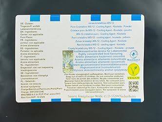 - Discover the fascinating freshness of the Cooling Agent WS-12 - your perfect companion for an incomparable cooling experience Our liquid Cooling Agent WS-12 is the ideal solution for anyone who wants to create intensive, long-lasting, yet gentle coolness in their products. Manufactured with the utmost precision and cutting-edge technology, this coolant delivers outstanding performance in a wide range of applications - from beverages to baked goods and cosmetic products. WS-12 is vegan, allergen-free and synthetically manufactured, meeting the highest quality standards.Features and versatilityWS-12 is characterized by its strong cooling effect, which is particularly noticeable on the tongue and the front of the mouth. It creates a pleasant freshness without the sharpness and burning of menthol, making it perfect for applications that require powerful yet gentle cooling.Thanks to its liquid form, WS-12 is easy to dose and integrate into recipes. It offers excellent solubility in ethanol and is practically insoluble in propylene glycol and water. For optimal use, we recommend ethanol as a solvent, as this is where the maximum concentration is achieved.Areas of application and creative inspirationFood and beverages: Perfect for soft drinks, sorbets, ice creams and candies. Add 1-20 ppm to achieve a refreshing coolness that enhances the taste of fruit or mint flavors.Baked goods: Ideal for cooling fillings or frostings at a dosage of 10-50 ppm to create an innovative taste experience.Cosmetic applications: Use WS-12 in lip care products, after-sun lotions or shower gels at 500-5000 ppm to create a cooling skin sensation.Special benefits at a View:Outstanding cooling performance: Intense, long-lasting freshness without irritation.Versatile applications: Suitable for food, drinks, cosmetics and more.Vegan and synthetically produced: Free from allergens and