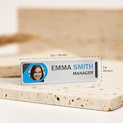 Versatile Use – Ideal for professionals in offices, restaurants, schools, retail, healthcare, and customer service. These name tags help create a polished, professional appearance while making identification simple in any work environment. Material & Design Options – Choose between stainless steel or metallic-look acrylic, both durable and lightweight for daily wear. Each tag measures 3" x 1", comes in silver or gold, and includes your choice of pin or magnetic backing for flexible attachment About the Personalization – Your design will be permanently printed for a lasting finish that won’t fade over time. With this option, you can to upload your own badge design, and we’ll reproduce it exactly as submitted. For the best results, please upload a high-quality image, as the final print quality depends on the file you provide. Important: Please, make sure to double check your personalization details before submitting the order because due to the nature of the product (customized) it can't be modified once is made because the printing is permanent.