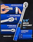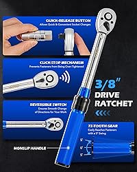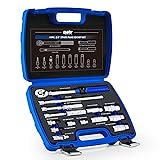 14-Piece Set: Orion Motor Tech's 3/8" drive spark plug socket set, including a torque wrench, 2 magnetic swivel sockets, 2 torx bits, 7 hex sockets, a universal joint, and a 10" extension bar, is your go-to tool for hassle-free spark plug replacement Easy Access & Removal: The 12-point magnetic sockets feature a 360° swivel design for easy access to spark plugs even in tight spaces, while the 6-point hex sockets deliver maximum torque for smooth removal of stubborn fasteners Dual-Direction Operation: Equipped with a reversible 72-tooth ratchet head, our spark plug wrench enables smooth clockwise and counterclockwise use. The quick-release button allows for quick socket changes, while the nonslip handle ensures both comfort and safety during operation Accurate Torque Control: This 3/8" drive torque wrench offers dual torque ranges of 5-45 lb ft & 6.8-61 Nm; precise adjustments in 0.5 lb ft increments and a 3% tolerance. The audible tactile clicks let you know when to stop, helping prevent over-torquing Durable & Easy to Organize: Made from heat-treated Cr-V steel, this spark plug removal tool is built to endure frequent demands of high-torque applications. Size markings inside the molded case and on the sockets allow easy identification and organization