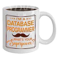 - Database Programmer 11oz White Ceramic Mug: Monizilucky creates unique funny coffee mugs which make great Birthday gift ideas for men, Birthday gift ideas for women, Valentine’s Day gift ideas, Mother’s Day gift ideas for Mom from Daughter or Son, Father’s Day gift ideas for Dad, Anniversary gift and Christmas present ideas for him or her. This funny coffee mug is made out of high quality ceramic. If you're shopping for a gift, you've found the one. Have a great gift delivered to their door, on-time in a nice gift box. This is the perfect mug for you or for someone you want to bring a smile to. A perfect size mug you can drink tea, soup or coffee out of. ● Printed in the USA ● Worldwide shipping ● Print type: Sublimation printing ● Material: Ceramic ● Color: White ● Sizing: 11oz ● Printed on both sides.