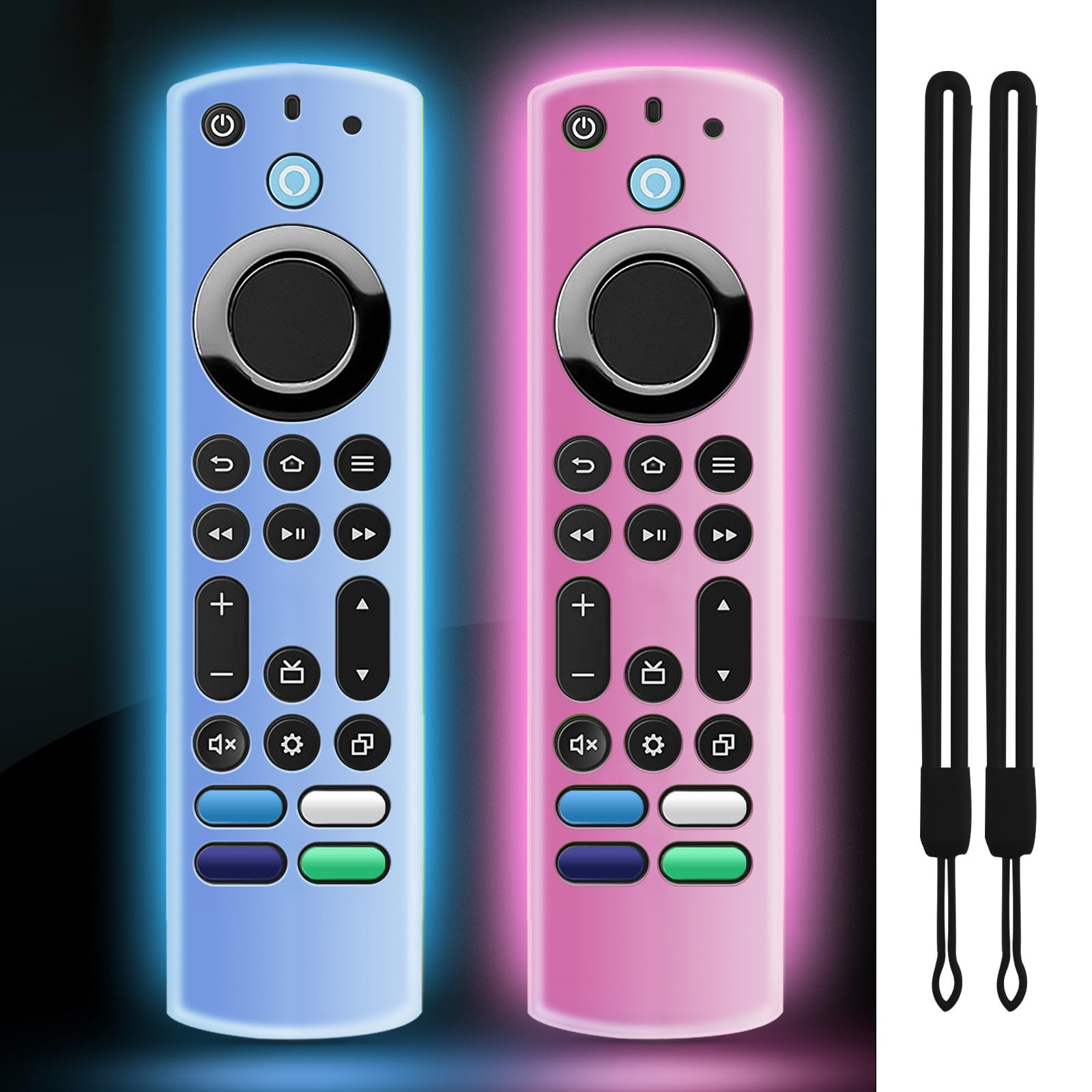 (2 Pack) OneBom Protective Remote Cover, Silicone Remote Control Case, Anti Slip Shockproof Protective Case with Lanyard(Not Golw Blue&Not Golw Red)