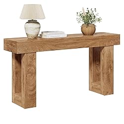 Farmhouse Charm: Crafted with a beautiful oak finish, the wooden tabletop of the console table exudes a warm and welcoming feel, perfect for any entryway or living space. Industrial Strength: Featuring robust wooden legs and an enduring wooden construction, this console sofa table blends farmhouse design with natural elements, ensuring both stability and aesthetic appeal. Space Maximizer: Measuring 63 inches in length, with its ample surface area, this sofa table provides an ideal spot to display decorative items, potted plants, a vase of flowers, family photos, or a table lamp while keeping your space organized. Multi-Purpose Utility: Whether used as a sofa table, entryway table, or hallway console, its versatile design allows it to serve various functions, catering to your specific needs in different rooms, offering both functionality and style to complement your home's décor. Easy Assembly & Maintenance: Designed for simplicity, this console table comes with all necessary components and clear instructions, making assembly a breeze. Plus, its smooth surface is easy to clean and maintain.
