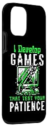 For funny game developers and coders who love game programming humor. This "I develop games that test your patience" design is pixel art-inspired and perfect for indie devs and programmers. Perfect for game developers and programmers with a sense of humor. This pixel art design combines gaming and coding in a funny and clever way. Ideal for those who love creating games and enjoy game development humor. Two-part protective case made from a premium scratch-resistant polycarbonate shell and shock absorbent TPU liner protects against drops Printed in the USA Easy installation