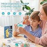 【Versatile Application】Our etching cream kit for glass is a fast acting is designed for creating intricate designs and patterns on windows, ceramic, mirrors and household glass surfaces. Our glass etching cream can be safely used at home. 【Lasting Results】This etching cream kit allows anyone to personalize the glass in minutes. Once dry, the etched design created by glass etching cream paste is long-lasting and durable. Your creations will stand the test of time and retain their elegance through weather and wear. 【Easy to Use】Use our etching cream for glassware with a pre-cut, glass-etching stencil or with a stencil you create yourself, brush on a thick layer of etching cream, wait 3-5 minutes, without the need for professional tools or experience to get beautiful etching results in a short time, achieve beautiful etched finishes. 【Safe and Effective】Formulated to provide reliable etching results while ensuring user safety during application. It is easy to apply does not require any special equipment or training. (Not Intended for Children; Not applicable for High boron Glass, Quartz Glass, Superhard Glass) 【Complete Package】Our etching cream kit include 1 etching cream, 3 Application Brushes,1 Paper Tape,1 Nitrile Gloves ,1 Reusable Silk Screen Label, The kits can meet your creative needs. If you have any problem, please feel free to contact us and we will provide you with a satisfactory solution.