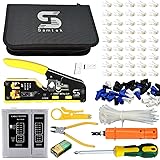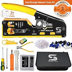 𝐀𝐋𝐋 𝐈𝐍 𝐎𝐍𝐄 𝐊𝐈𝐓: Upgraded Passt hrough RJ45 Ethernet Network tool Kit Crimper & Network Cable Kit! Perfect for Cat5e/Cat6 cables, it includes tools to crimp, strip, and test Ethernet connections. Ideal for pros and DIYers, its compact design is great for on-the-go use. The passthrough crimper ensures secure, precise connections for stable networks. A must-have for setup, maintenance, or repairs 𝐌ultifunctional 𝐂rimping 𝐓ool 𝐊it: The ethernet cable crimping tool is compatible with Cat5/Cat5e/Cat6 pass-through RJ45 plugs and RJ11 connectors for Ethernet and telephone lines. Its built-in stripper and cutter allow you to perform stripping, cutting, and crimping operations with a single tool. 𝐀𝐃𝐉𝐔𝐒𝐓𝐀𝐁𝐋𝐄 𝐂𝐑𝐈𝐌𝐏𝐈𝐍𝐆 𝐓𝐎𝐎𝐋: You can control the pressure for varying cable depths with the built-in stripper and cutter of the pass through rj45 crimper. The sharp blades neatly and cleanly cut wires off, allowing you to complete stripping, cutting, and installation with a single tool. 𝐏𝐀𝐒𝐒 𝐓𝐇𝐑𝐎𝐔𝐆𝐇 𝐃𝐄𝐒𝐈𝐆𝐍: The RJ45 pass through crimp tool structure is designed for pass-through rj45 connectors; the built-in baldes will cut the extra wires and crimp the connectors at the same time, making the wiring work easier, enhancing the success rate, and saving much time while working. 𝐂𝐎𝐌𝐅𝐎𝐑𝐓𝐀𝐁𝐋𝐄 𝐆𝐑𝐈𝐏: The non-slip handle of the ethernet crimping tool kit makes it easy to hold and use, and the lock design allows it to take up less room when not in use. Handle grips will keep you from becoming tired and will keep your hand from slipping when cutting, crimping, and stripping.