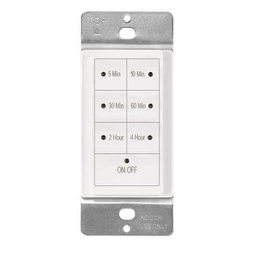 - Pre-Set Timer Options- 6 pre-set times ranging from 5 minutes to 4 hours to have your lights or fan remain on and then automatically turn off. Select from 5 minutes, 10 minutes, 30 minutes, 60 minutes, 2 hours, and 4 hours.