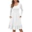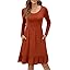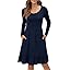 LILBETTER Women Casual Long Sleeve Knee Length Dresses Round Neck Pleated Fall Dress with Pockets 2024