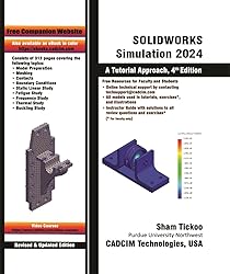 - SOLIDWORKS Simulation 2024: A Tutorial Approach textbook has been written to help the users learn the basics of FEA. In this textbook, the author has used the tutorial point of view and the learn-by-doing theme to explain the tools and concepts of FEA using SOLDWORKS Simulation. Real-world mechanical engineering industry examples and tutorials have been used to ensure that the users can relate the knowledge gained through this book with the actual mechanical industry designs. This textbook covers all important topics and concepts such as Model Preparation, Meshing, Connections, Contacts, Boundary Conditions, Structural Analysis, Buckling Analysis, Fatigue Analysis, Thermal Analysis, Nonlinear Analysis and Frequency Analysis. Salient Features of this textbook are as follows:Textbook consisting of 9 chapters that are organized in a pedagogical sequence.Summarized content on the first page of the topics that are covered in the chapter.More than 30 real-world mechanical engineering simulation problems used as tutorials and projects with step-by-step explanation.Additional information throughout the book in the form of notes and tips.Self-Evaluation Tests and Review Questions at the end of each chapter to help the users assess their knowledge. Table of Contents Chapter 1: Introduction to FEA and SOLIDWORKS Simulation Chapter 2: Defining Material Properties Chapter 3: Meshing Chapter 4: Linear Static Analysis Chapter 5: Advanced Structural Analysis Chapter 6: Frequency Analysis Chapter 7: Thermal Analysis Chapter 8: Nonlinear Analysis Chapter 9: Implementation of FEA Index Free Teaching and Learning Resources: CADCIM Technologies provides the following free teaching and learning resources with this textbook:Technical support by contacting [email protected] models used in tutorials, exercises*, and illustrations.Instructor Guide with solution to all review questions and instructions to create the models for exercises* (* For faculty only)About the Authors:CADCIM Technologies, Prof. Sham Tickoo of Purdue University Northwest, and the team of dedicated contributing authors at CADCIM Technologies are committed to bring you the best textbooks, eBooks, free teaching and learning resources on CAD/CAM/CAE, GIS, Civil, Animation & VFX, and related technologies. We strive to be the first and the best. That is our promise and goal.Our team of authors consists of highly qualified and experienced Engineers and Programmers who have a strong academic and industrial background. They understand the needs of the students, the faculty, and the challenges our students face when they start working in industry. All our books have been structured in a way that facilitates teaching and learning, and also exposes students to real-world applications. The textbooks, apart from providing comprehensive study material, are well appreciated for the simplicity of content, clarity of style, and the in-depth coverage of the subject.