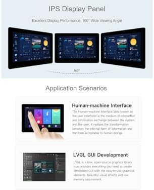 Introduction ESP32-S3-Touch-LCD-4.3B is a microcontroller development board with 2.4GHz WiFi and BLE 5 support, integrates high-capacity Flash and PSRAM. Onboard 4.3inch capacitive touch screen can smoothly run GUI programs such as LVGL. Combined with various peripheral interfaces, suitable for the quick development of the HMI and other ESP32-S3 applications Features Equipped with Xtensa 32-bit LX7 dual-core processor, up to 240MHz main frequency Supports 2.4GHz Wi-Fi (802.11 b/g/n) and Bluetooth 5 (LE), with onboard antenna Built in 512KB SRAM and 384KB ROM, with onboard 16MB Flash and 8MB PSRAM Onboard 4.3inch capacitive touch display, 800×480 resolution, 65K color Supports capacitive touch control via I2C interface, 5-point touch with interrupt support Onboard voltage regulator, supports 7~36V wide range power supply Onboard RTC chip and rechargeable battery to ensure time data is not lost when power loss Onboard CAN, RS485, I2C interface and TF card slot, GH1.25 2P battery header and digital isolated IO interfaces, etc. Supports passive and active digital input, with bi-directional optocoupler isolation Supports digital output with optocoupler isolation, provides higher driving capability with up to 450mA sinking current Onboard LED indicators for indicating the power and battery recharging status Supports flexible clock, module power supply independent setting and other controls to realize low power consumption in different scenarios Package Content ESP32-S3-Touch-LCD-4.3B-BOX x1 Note Technical Support is provided, please contact with us first if you have any problem .