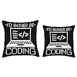 Programmer Coder I'd Rather Be Coding Throw Pillow